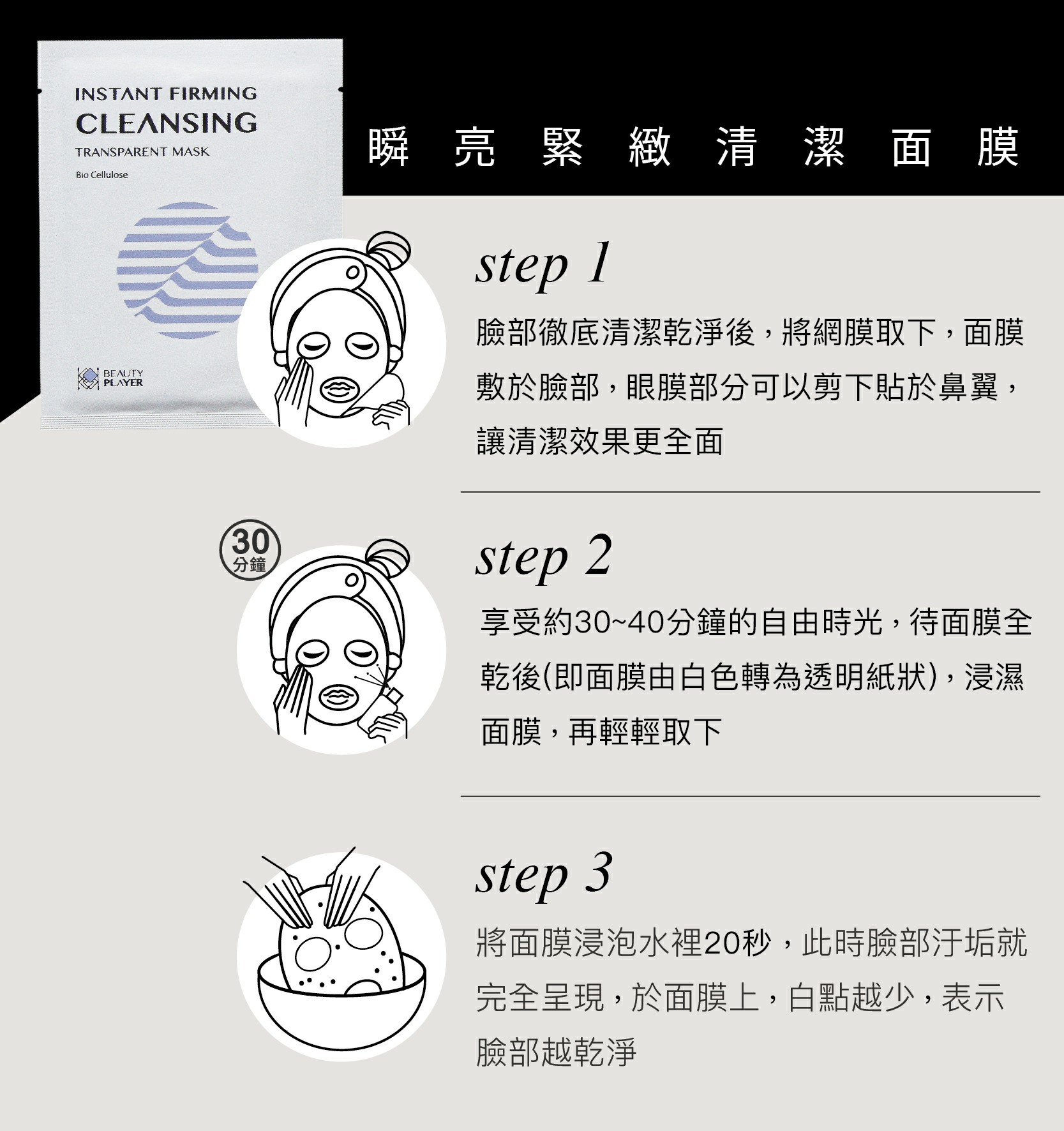 (因膚況不同,清潔面膜建議第一次使用的敏感肌者先進行耳後測試)