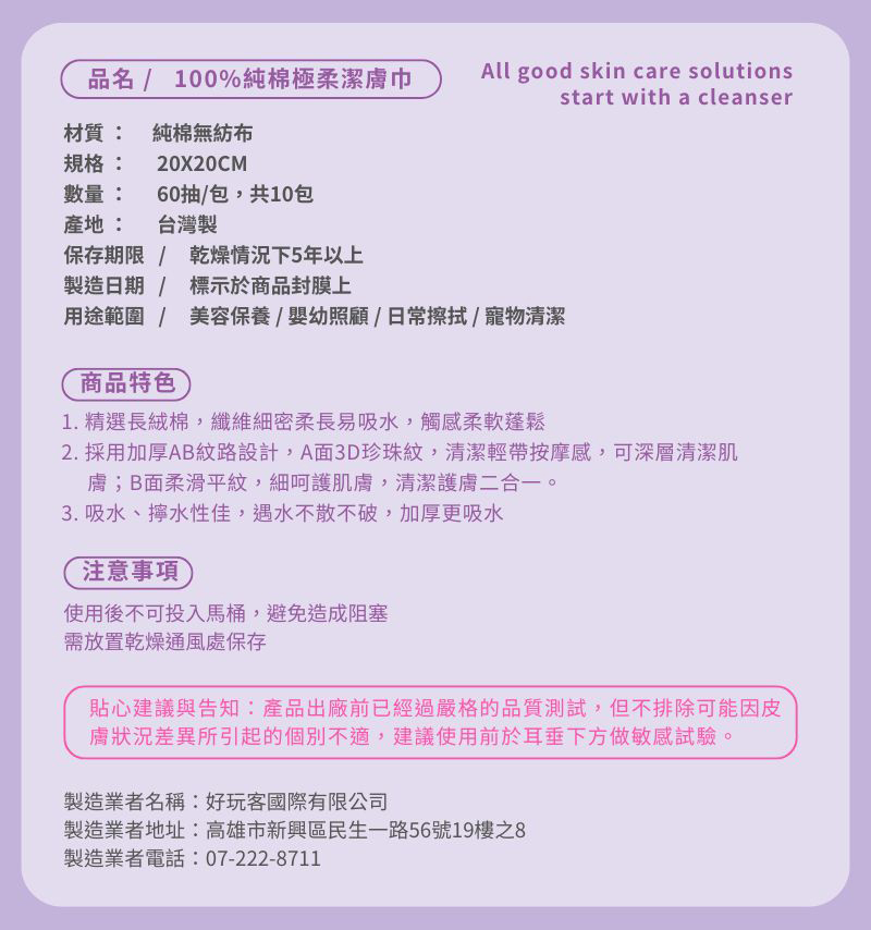 100%純棉,親膚舒適、吸水力高
