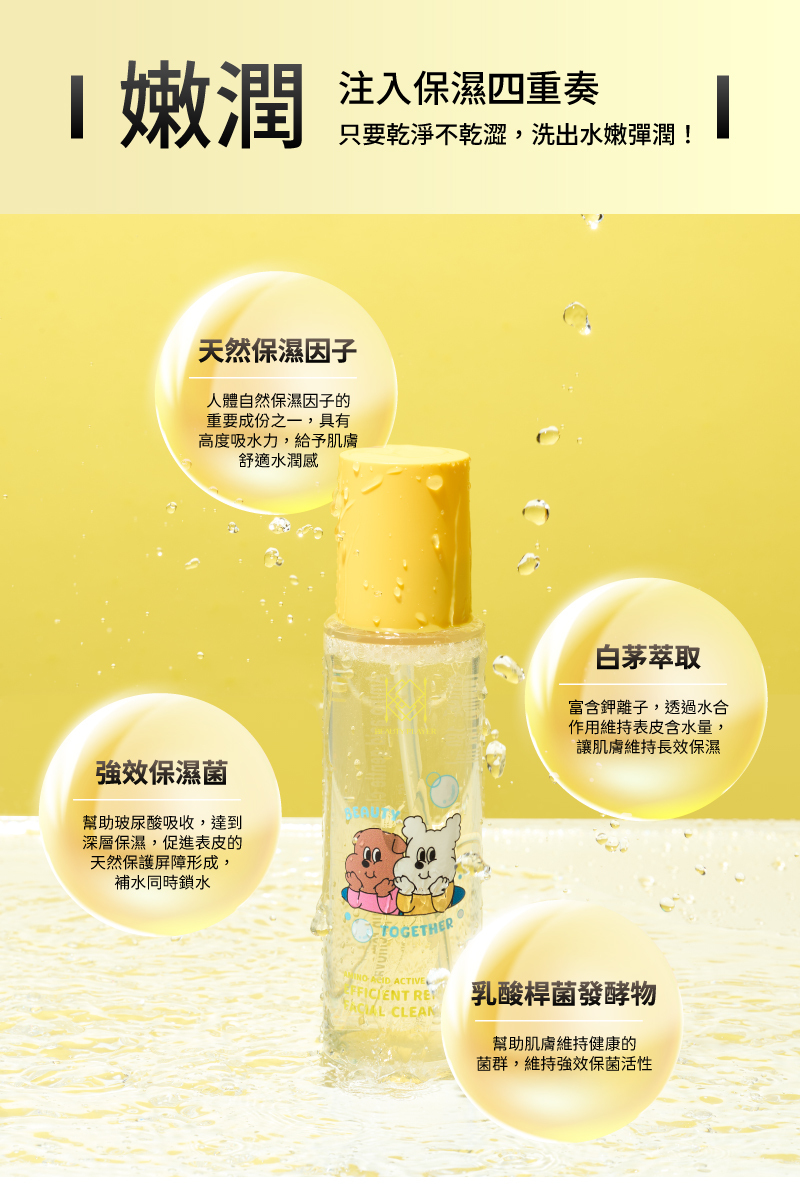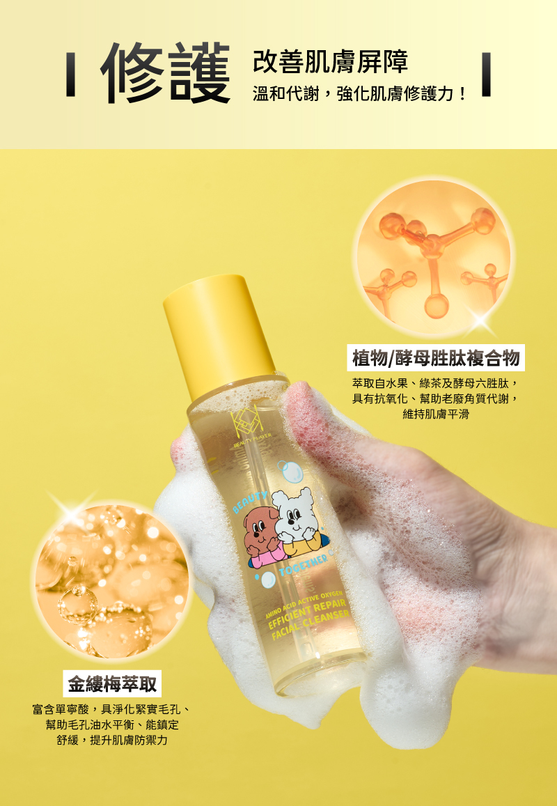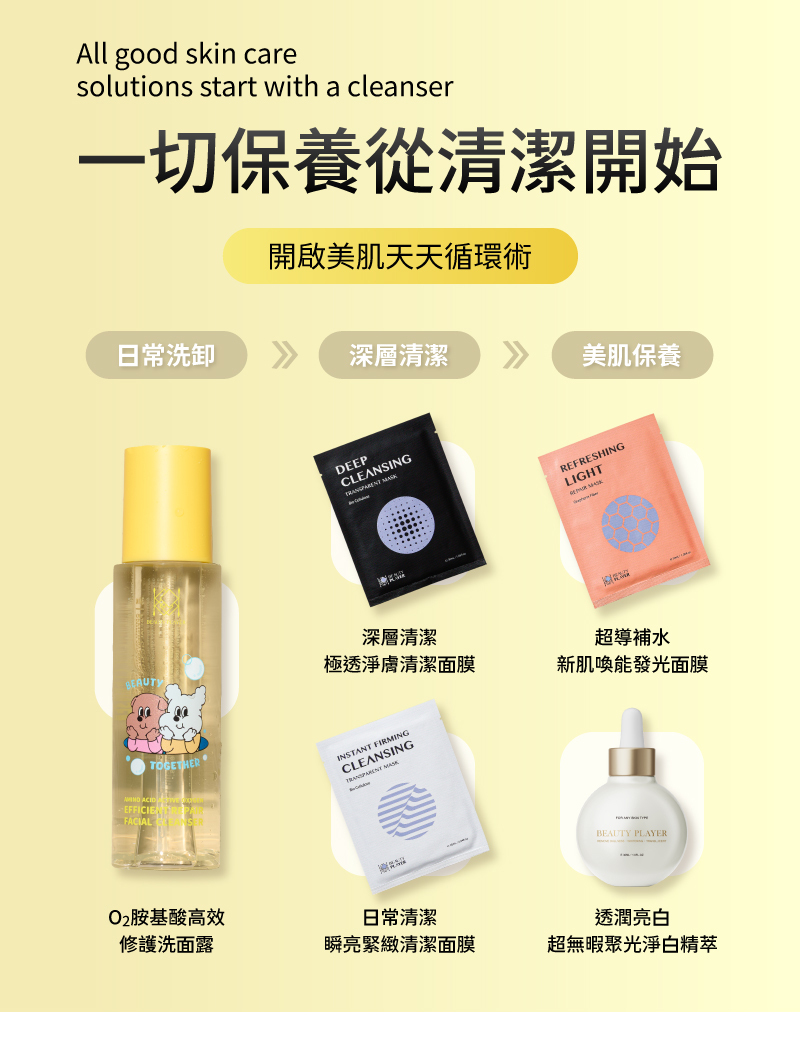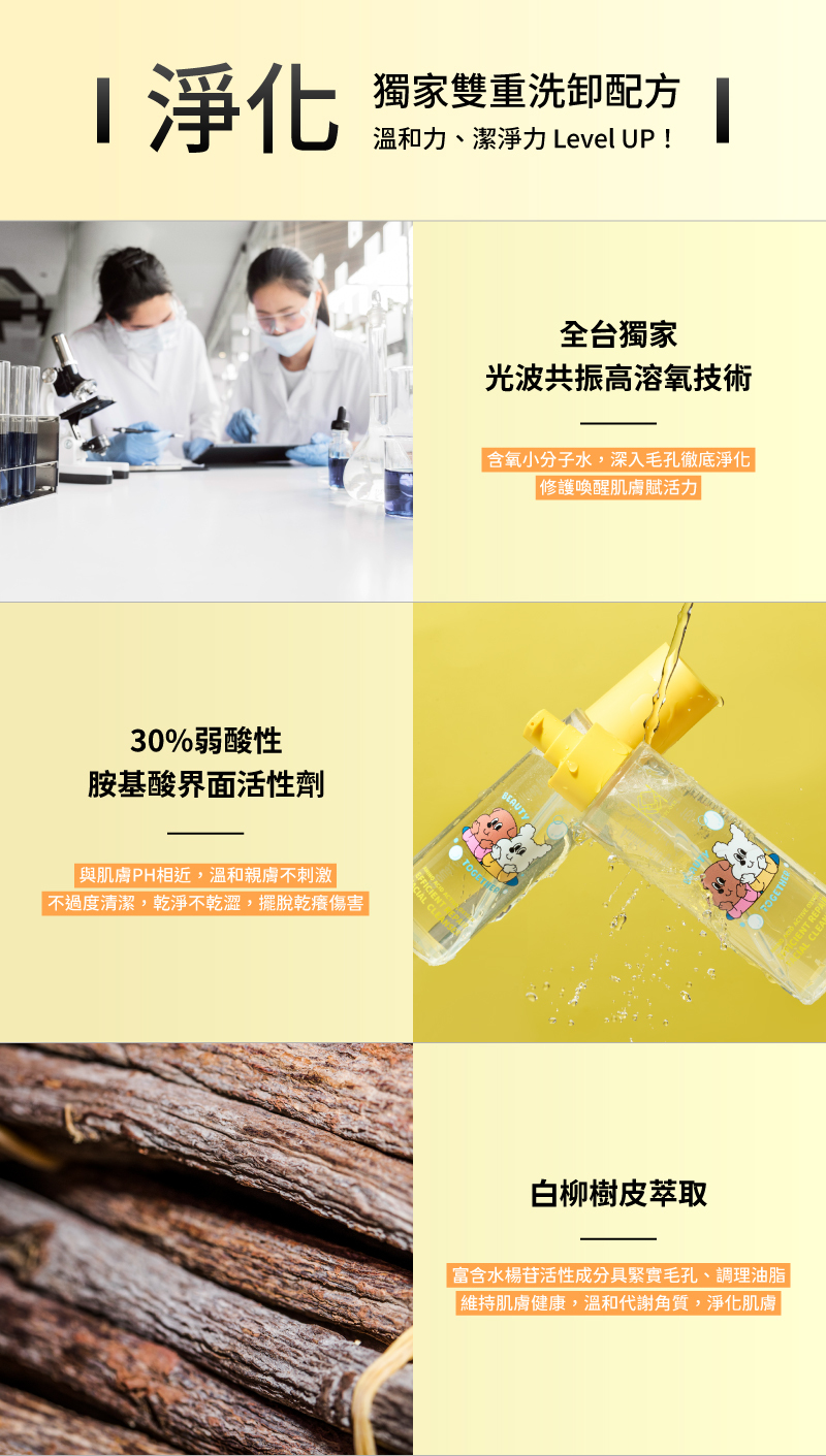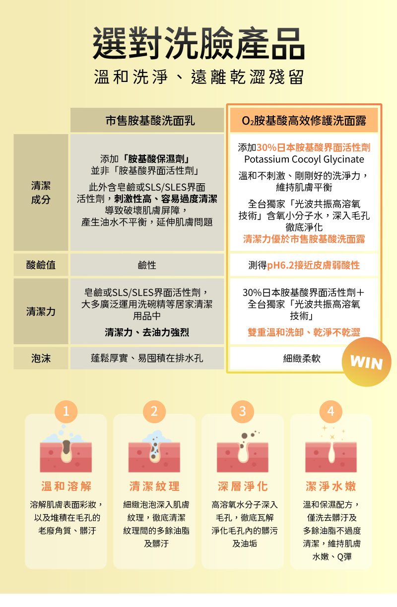 獨家雙重洗卸配方:溫和胺基酸洗劑x 光波共振高溶氧技術